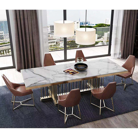 Sillas y mesas de 8 plazas de mármol de lujo tradicional para juego de mesa de comedor muebles para el hogar 1 pieza mesa de comedor