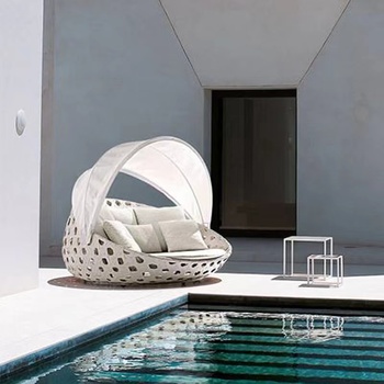 Hot Sell Luxury Round Rattan Outdoor Sleeping Folding Day Bed Furniture